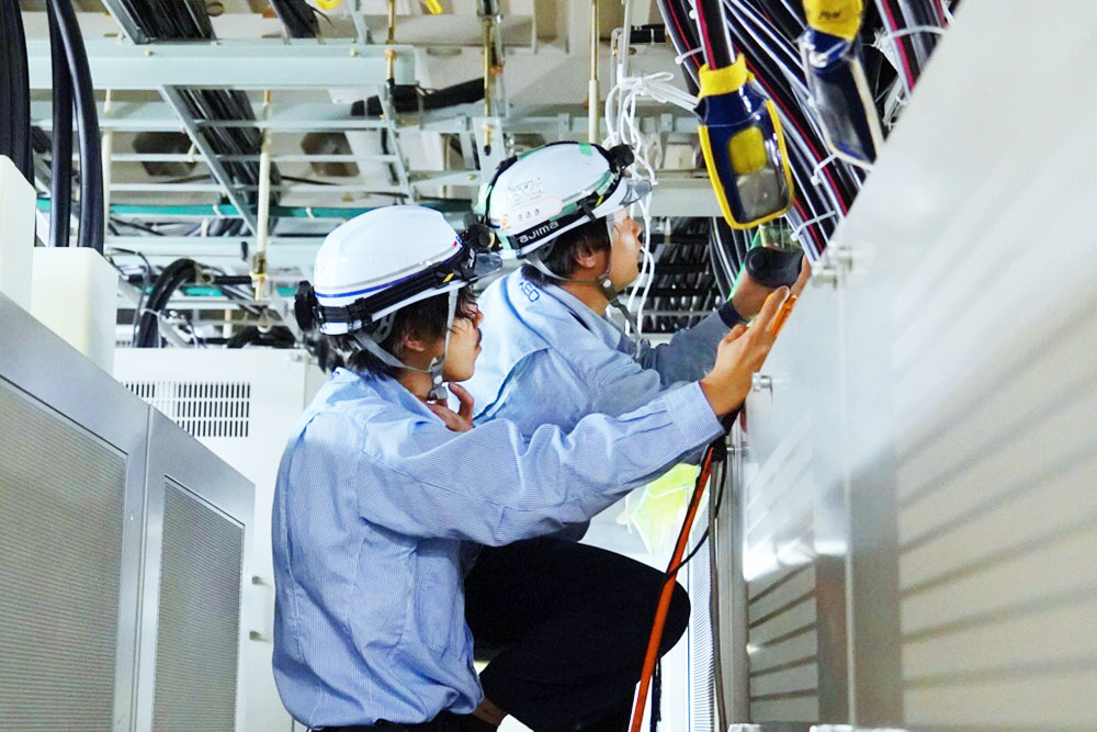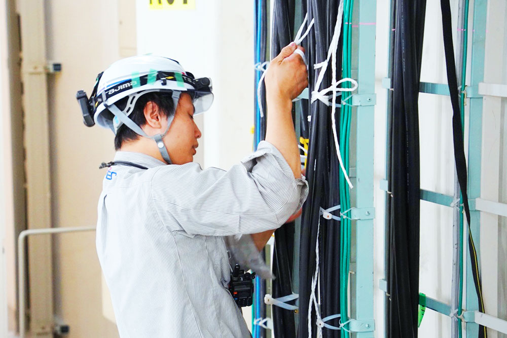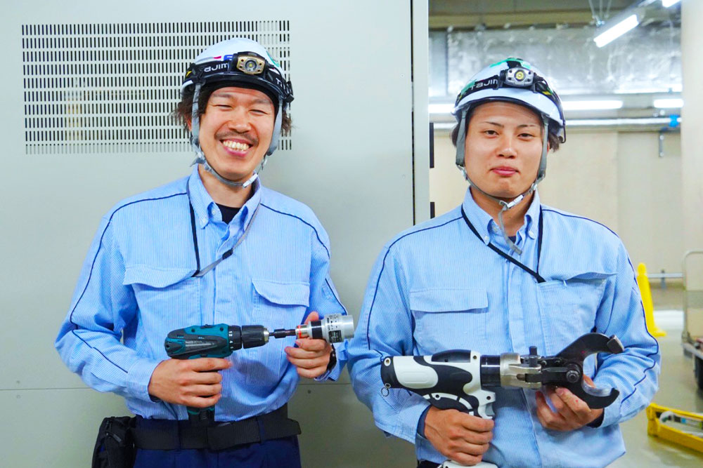 前職の電気工事時代との一番の違いは、データセンターでの屋内作業が中心のため、空調設備が整った快適な環境で働けている点です。休憩スペースも充実しており、メリハリをつけて無理なく業務に取り組め、早朝出勤や長時間残業に追われることがなく、自分の時間を大切にしながら働けます。現場に行くまでの積み込み作業なども不要で移動時間も短く、効率的に業務を進められる環境です。長く安心して技術を磨きたい方に最適な職場です。